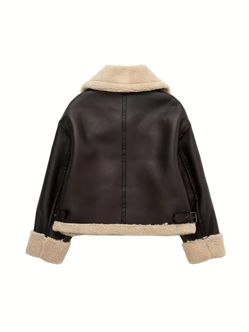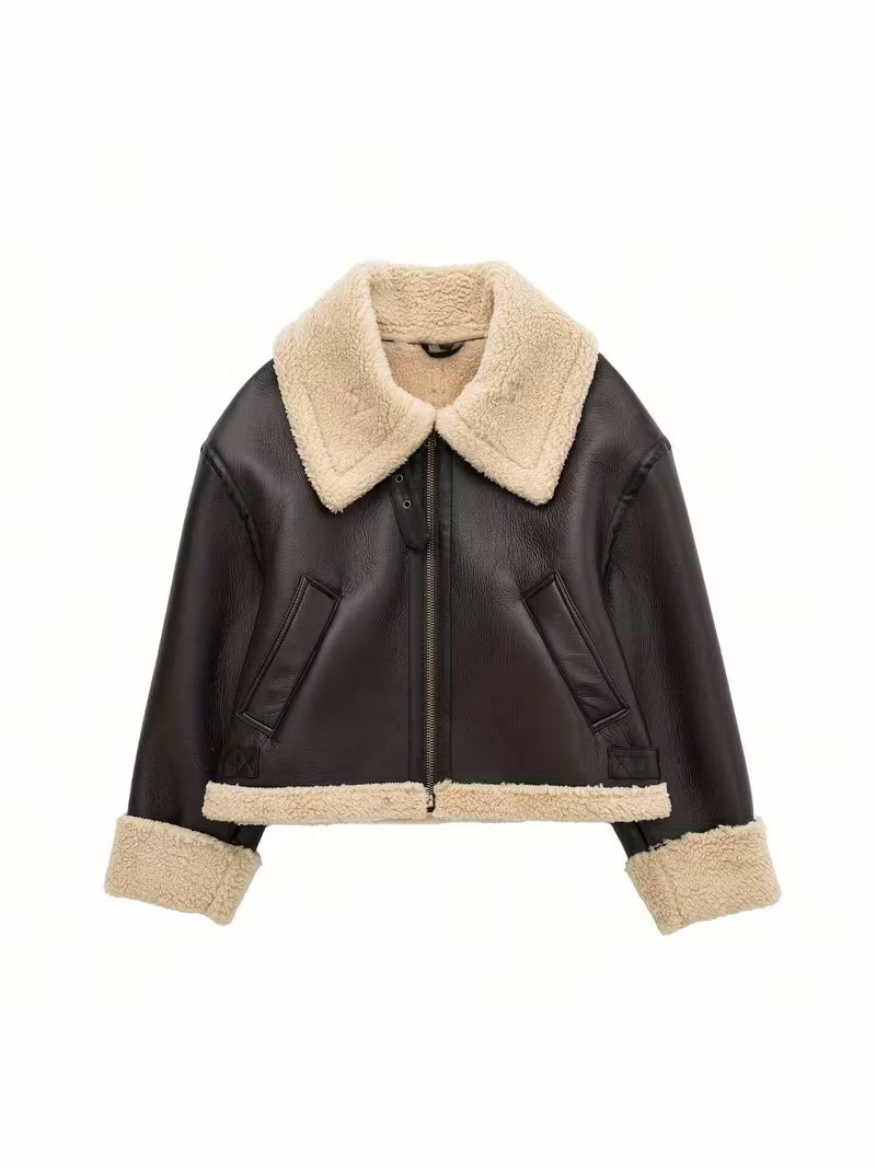 - Design: Fodrad aviatorjacka i skinnlook med mjukt teddyfoder, markerad krage och dragkedjestängning för optimal värme och komfort